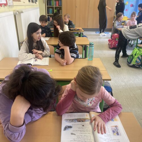 Die Schülerinnen und Schüler der 4A hatten die wunderbare Gelegenheit, ihren jüngeren Mitschüler/innen aus der Klasse 1A vorzulesen. Die älteren Schülerinnen und Schüler halfen den jüngeren bei schwierigen Wörtern.