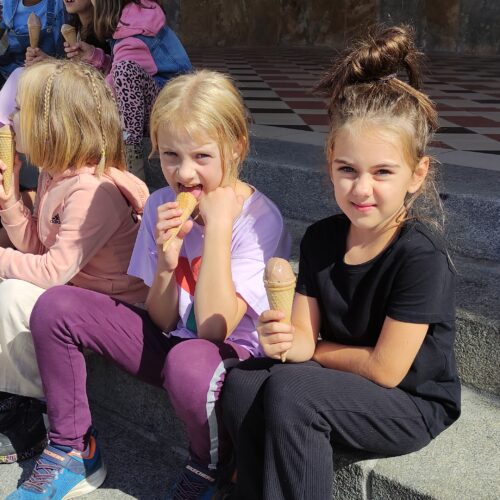 Gleich zu Schulbeginn fand eine besondere Aktion statt: alle Kinder erhielten ein gratis Charley Temmel-Eis. Das Eis schmeckte vorzüglich und sorgte für viele strahlende Gesichter.