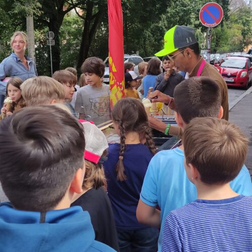 Gleich zu Schulbeginn fand eine besondere Aktion statt: alle Kinder erhielten ein gratis Charley Temmel-Eis. Das Eis schmeckte vorzüglich und sorgte für viele strahlende Gesichter.