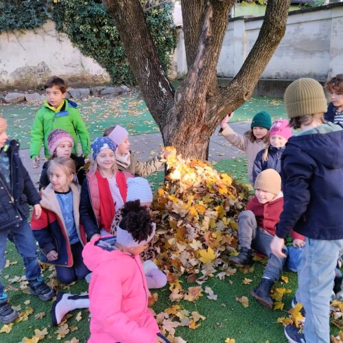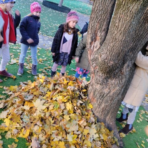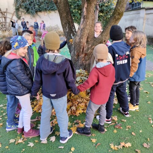 Mit Begeisterung bauten die Kinder der 1a einen Unterschlupf für den Winter. Die Idee entstand nach der Sachunterrichtsstunde, wo es um den Winterschlaf der Tiere ging.