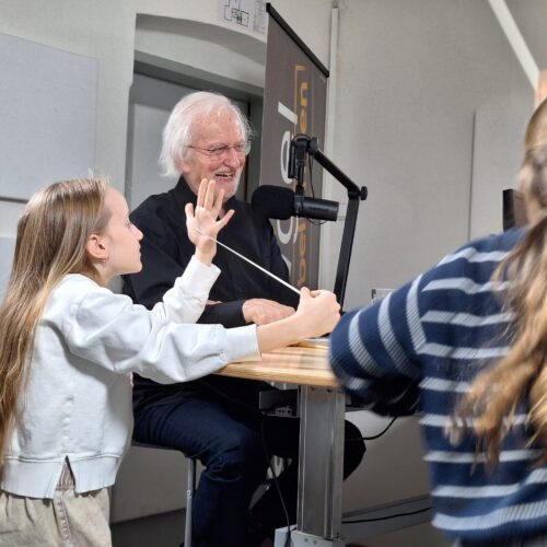 In dieser Episode des Podcasts „Kleine Reporter*innen, große Fragen“ der Volksschule Nibelungen sprechen die SchülerInnen Greta, Helena und Amal mit Prof. Alois J. Hochstrasser, einem angesehenen Dirigenten und Musikprofessor.