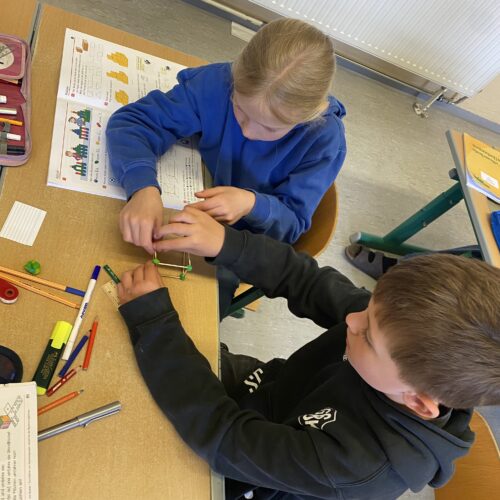 29. April 2024/top-news/David Pöttler Die Kinder der 3a bauten mit Zahnstochern und Knete ein Würfelmodell. Nach dem Motto „learning by doing“.