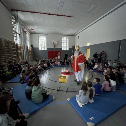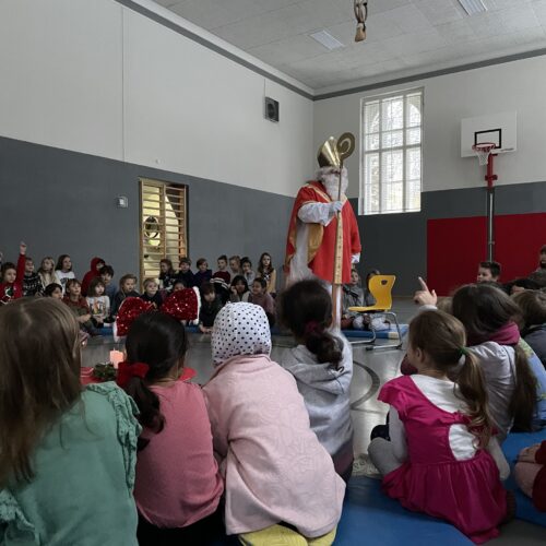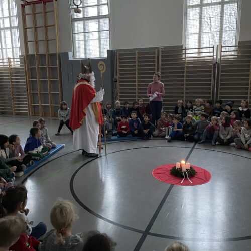 Am 5. Dezember besuchte uns der Nikolaus. Er erzählte uns eine interessante Geschichte und brachte allen Schülerinnen und Schülern eine kleine Überraschung mit. Als Dank sangen die Kinder ein Lied für den Nikolaus.