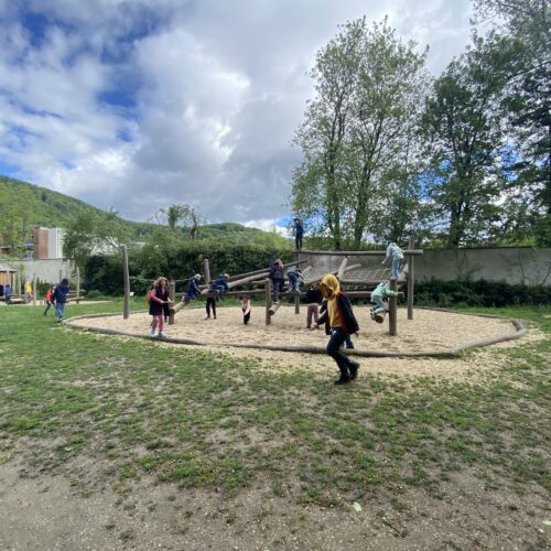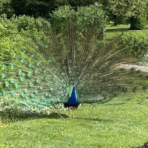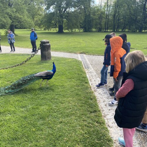 Beeindruckt waren die Schüler:innen nicht nur vom schönen Planetensaal, sondern auch von den prächtigen Pfauen im Park.