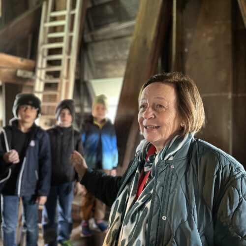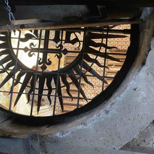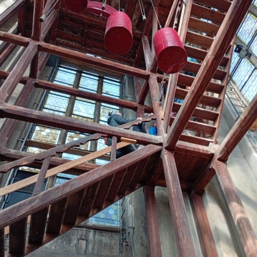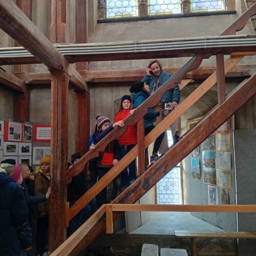 Frau Wünscher – Dringel erzählte interessante Dinge über die Kirche und brachte uns bis zu den Glocken hinauf. Über den Dachboden ging es wieder hinunter in den Altarraum. Dort besuchten wir noch die Sakristei.