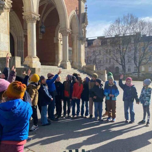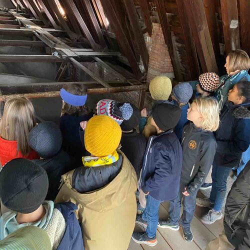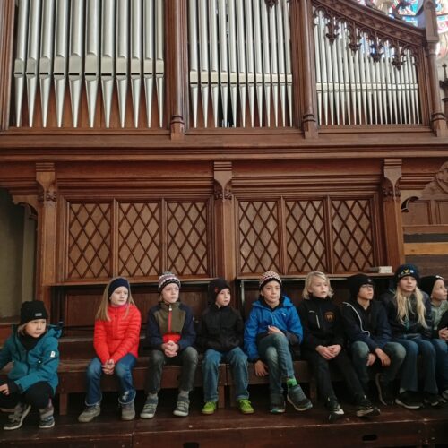 Endlich war es soweit! Die Kinder der 3a freuten sich schon riesig auf die Kirchturm-Führung in der Herz Jesu Kirche.