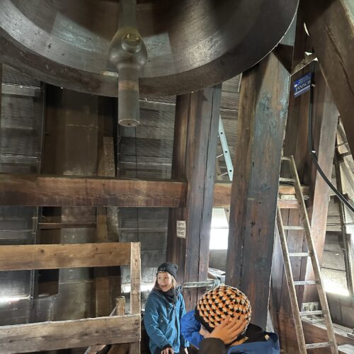 Frau Wünscher – Dringel erzählte interessante Dinge über die Kirche und brachte uns bis zu den Glocken hinauf. Über den Dachboden ging es wieder hinunter in den Altarraum. Dort besuchten wir noch die Sakristei.